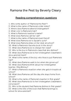 Download RAMONA THE PEST COMPREHENSION QUESTIONS Doc